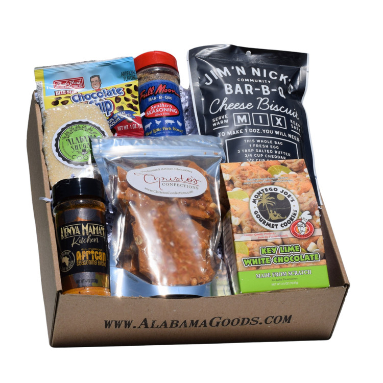 Cooks will love experimenting with Full Moon and Kenya Mama seasonings and whipping up a quick dinner side with Jim N Nick’s Biscuit Mix. And for all the snackers out there, you’ll find yourself craving Mr. P’s tasty cookies, plus peanut brittle and Bud's Best cookies. Don’t forget the fun Alabama-shaped shugah cookie—it's the sweetest way to enjoy a little piece of home!