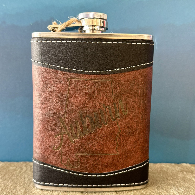 Show your Auburn pride with this premium leather-wrapped flask, featuring a laser-engraved War Eagle design on rich two-tone leather. Crafted for both style and function, it’s a refined way to carry your favorite beverage on game day, at celebrations, or wherever the moment calls for a toast. A standout gift for Auburn fans who appreciate timeless craftsmanship.